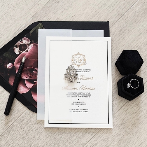 We offer an assortment of Vintage, Classic, Brooch, Trifold, Pocketfold, Laser Cut, Modern, Acrylic, Letterpress, Embossed, Semi Arch Shape, Half Arch Shape, Vellum, UV/Thermography, Foil Pressed, Arched Wedding Cards and much more. If you are looking for wedding invitation templates or wedding invitation cards, we have a lot to choose from.