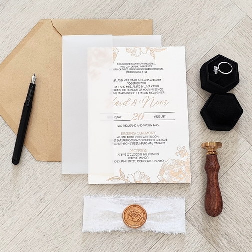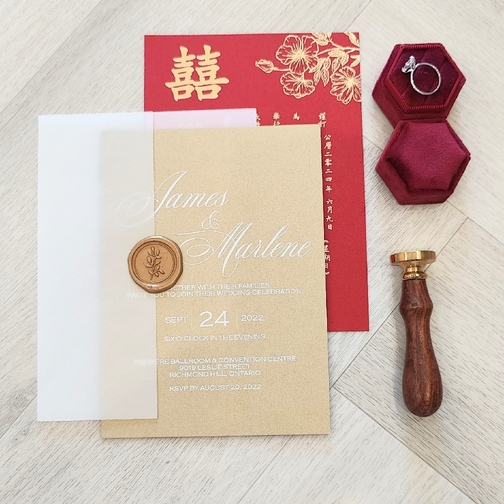 We have designed many wedding cards based on the variety of ethnic groups that are in Toronto. We are very familiar with the typical customs from all cultures. We have created wedding invitations that have been translated to Italian, Greek, Spanish, Portuguese, Chinese, Korean, Vietnamese, African, South Asian, Indian, Persian, Middle Eastern, Iranian, Afghani, Assyrian, Egyptian, Japanese, Russian, Caribbean, Guyanese, and many more! We are very familiar with many religious requirements needed when creating invites for religions such as Hindus, Sikhs, Muslim, Catholics, Christians, Jewish and others by adding elements like the Ganesh, Ek Onkar, Ohm, Khanda, Bismillah, Crosses, Hebrew Prayers and symbols and more.