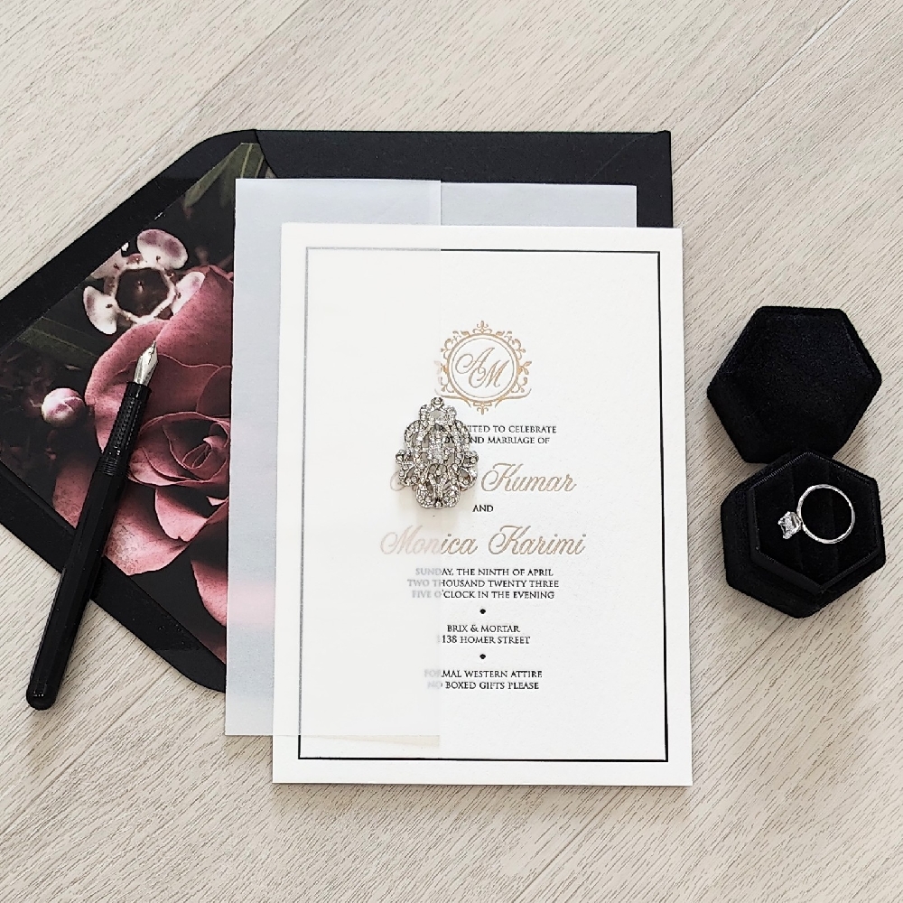 This is a gallery of recent photos of custom wedding invitation designs from our past clients. During our consultation phase, we will listen to the client to see what we can create to give them a custom invitation look. These photos have also been posted to our Instagram feed.